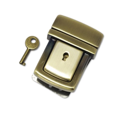 Antik réz színű, kulccsal zárható tuck zár. Mérete 52 mm x 43 mm