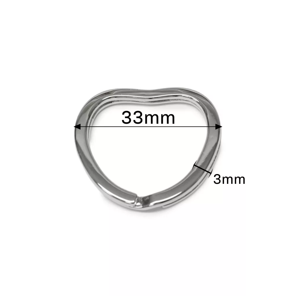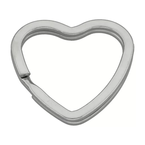 Ezüst színű, szív alakú kulcstartó karika – a klasszikus kulcskarika különleges, dekoratív változata. Ha unod a megszokott, sima karikát, ez egy látványos, mégis igényes alternatíva. Fényes, lapos acélból készült.