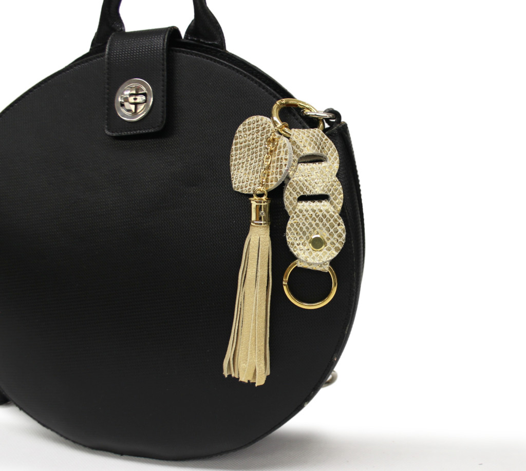 Táskadísz és kulcstartó arany, ezüst és rosegold bőrből