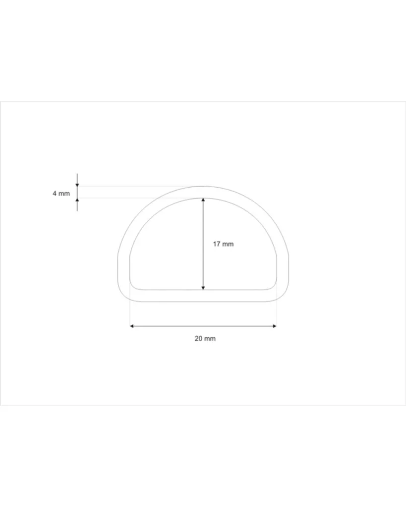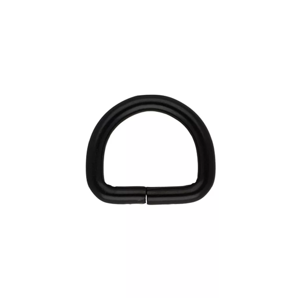Hajlított vas D-karika. Fekete színű. Belső mérete 20 mm, vastagsága 4 mm.