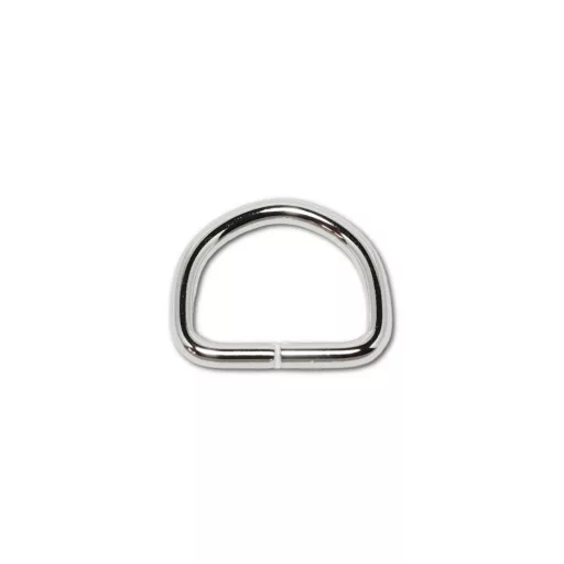 Hajlított vas D-karika. Nikkel színű. Belső mérete 20 mm, vastagsága 3,8 mm.