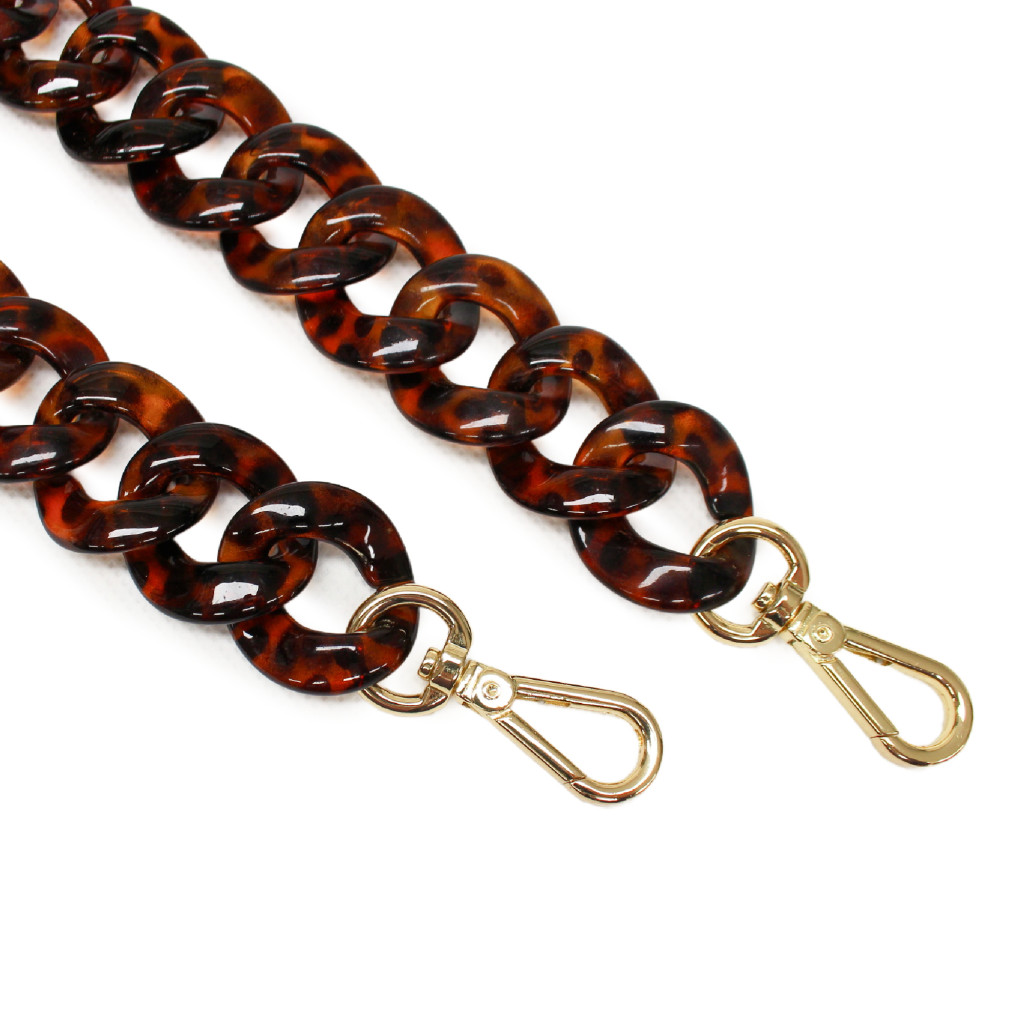 Borostyán színű, természetes hatású táskalánc műanyagból.