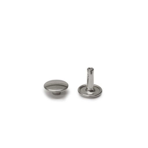 Nikkel színű dupla fejű szegecs. A fej átmérője 9,2 mm, láb magassága 8 mm.