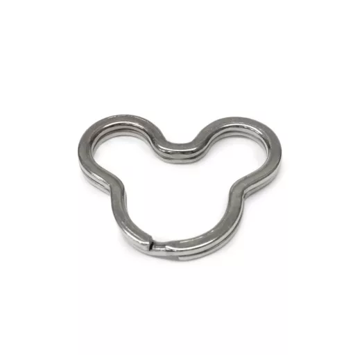 Nikkel színű, igényes, lapos kulcskarika Mickey egér fejének formájával.