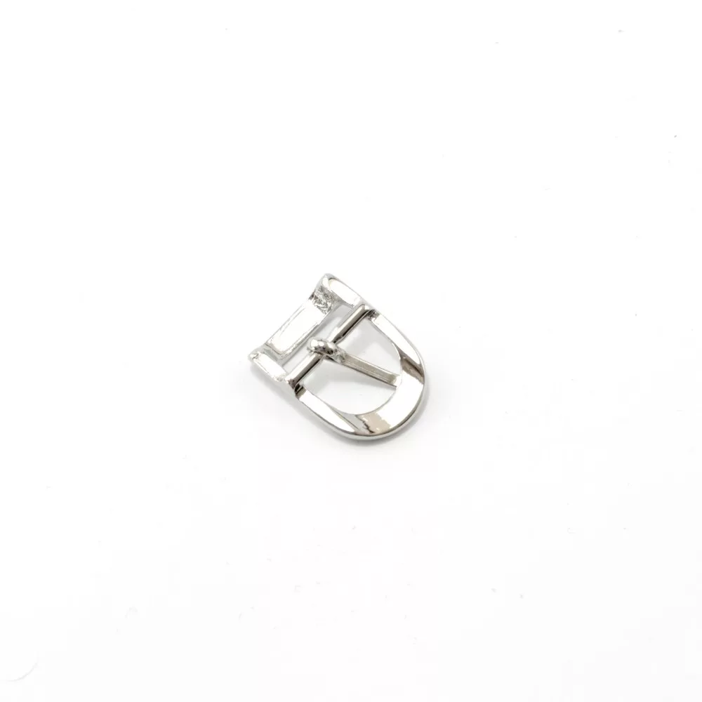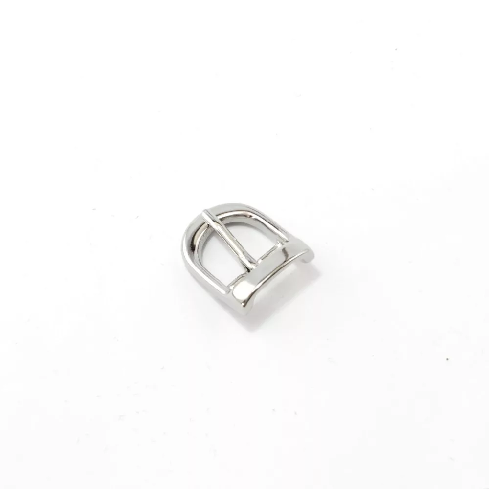 Kisméretű csat, nikkel színben. Belső hossza 12 mm.