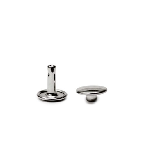Nikkel színű dupla fejű szegecs. A fej átmérője 11 mm, láb magassága 10,2 mm.