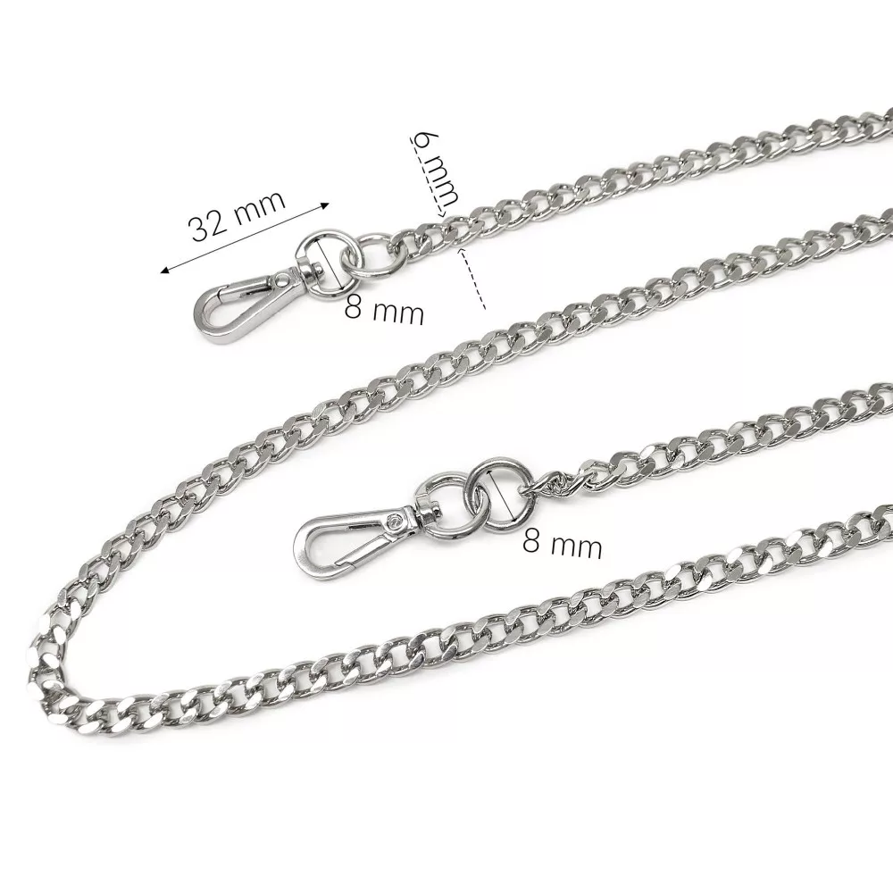 Fényes, lapos szemekből álló, finom, vékony táskalánc amit kisebb méretű, elegáns estélyi táskákhoz, borítéktáskákhoz ajánlunk.